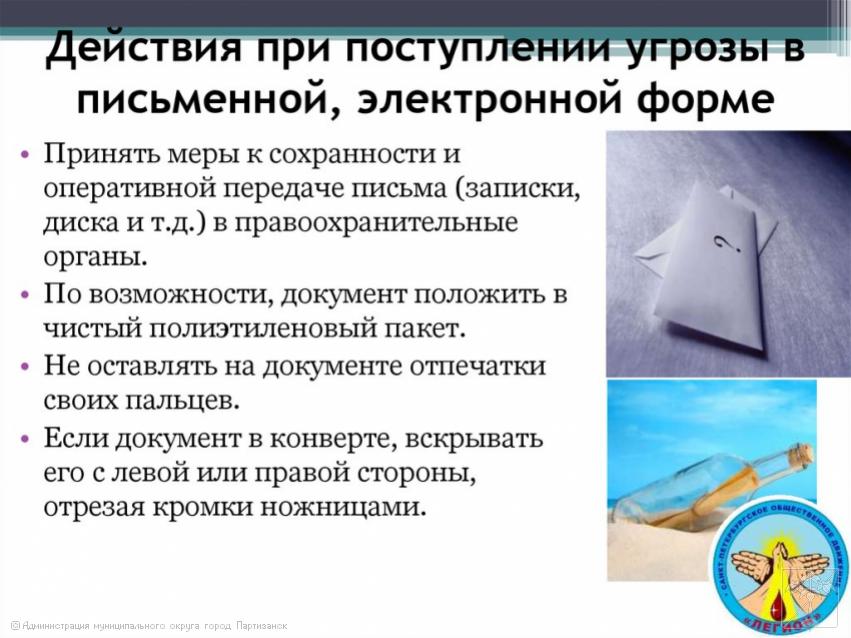 pamyatka.docx Скачать файл. 14.07 КБ pamyatka.docx 176 просмотров Перекрёстные ссылки книги для «Порядок действий при поступлении угрозы террористического акта в письменном виде» 14.03.2025 г. ‹ «Порядок действий при приёме телефонного сообщения с угрозами террористического акта» 07.03.2025г. Вверх видеоролик ›