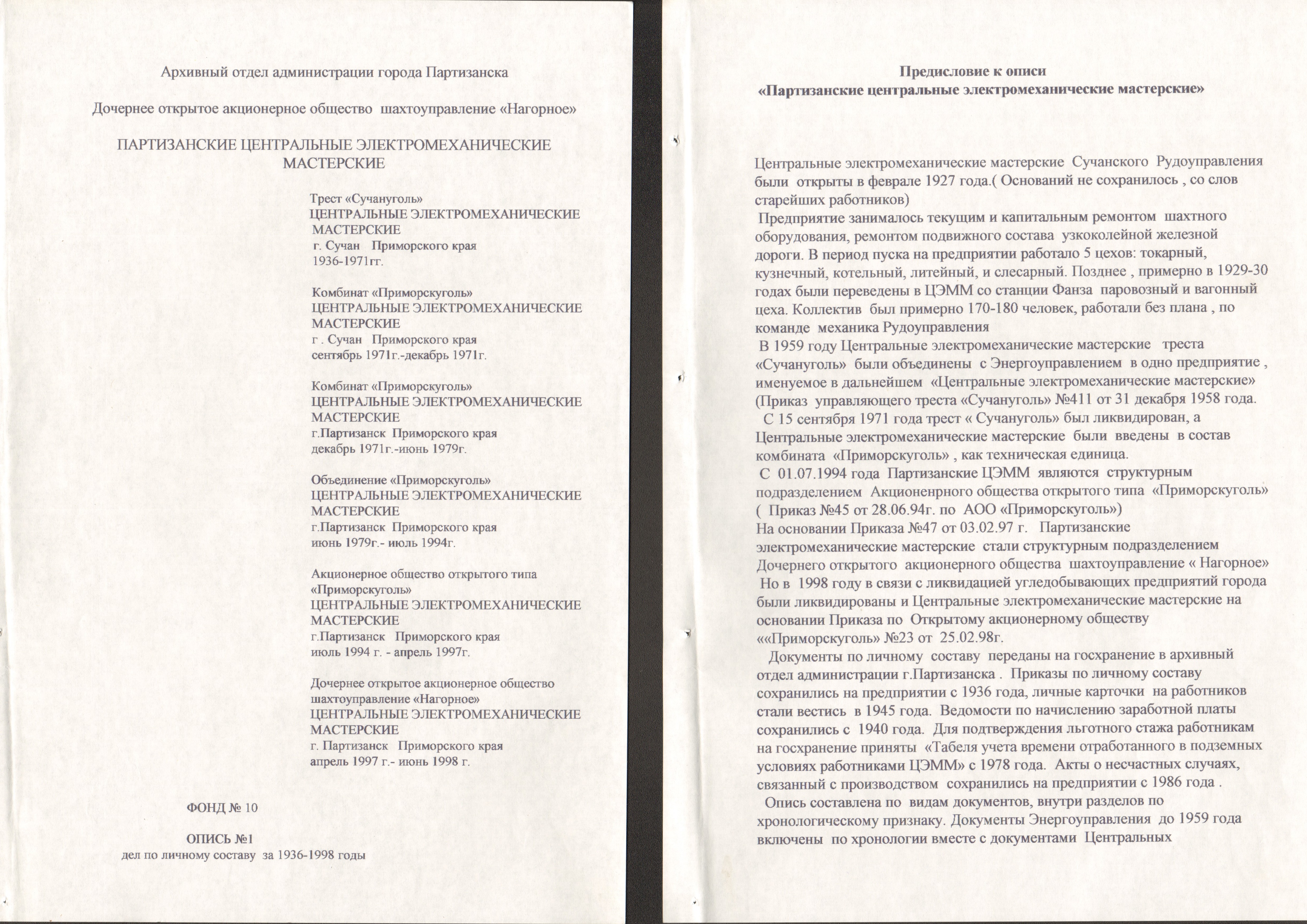 ф.10, оп. 2 дел по личному составу ЦЭММ | Администрация муниципального округа город Партизанск Приморского края