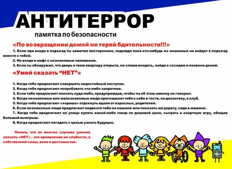 pamyatka_shkolnikam_ob_antiterroristicheskoy_bezopasnosti.docx Скачать файл. 14.62 КБ pamyatka_shkolnikam_ob_antiterroristicheskoy_bezopasnosti.docx 227 просмотров Перекрёстные ссылки книги для Памятка школьникам об антитеррористической деятельности. 28.11.2024г. ‹ Памятка для руководителей по обеспечению антитеррористической защищенности торговых объектов (территорий) 23.01.2025г. Вверх ПАМЯТКА гражданам об их действиях при установлении уровней террористической опасности ›