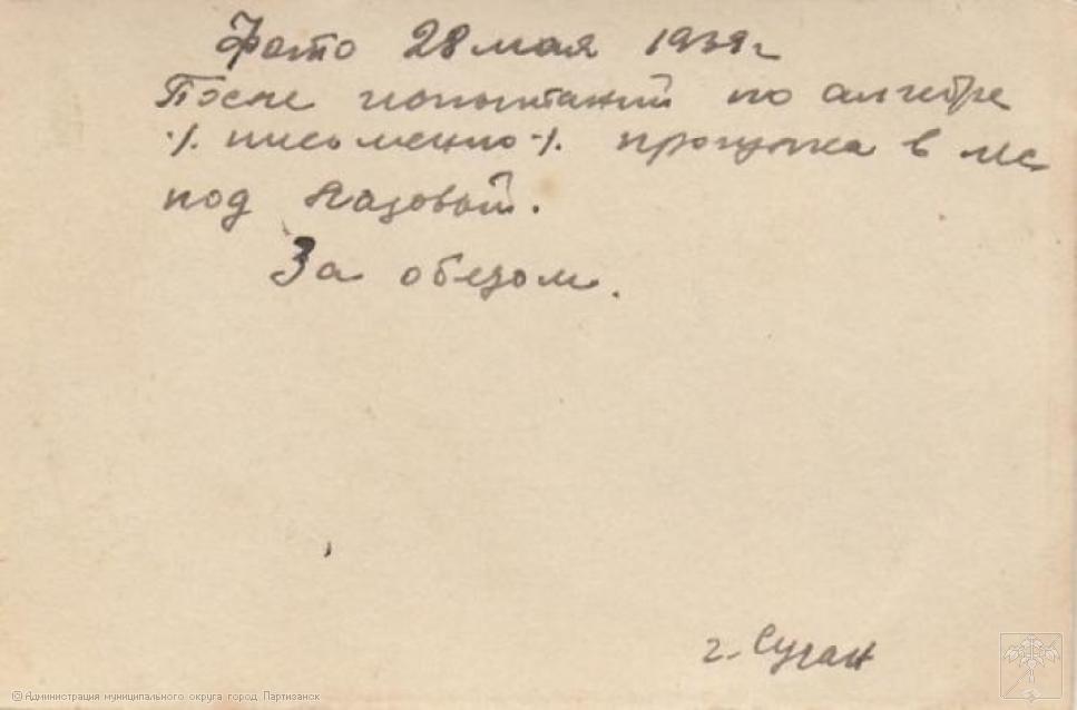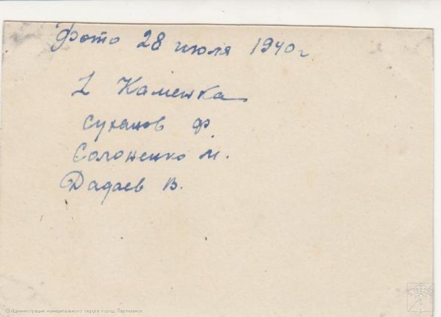 Я еще нашел три десятка фотографий по Сучану. Единственное, что там, в основном, люди: где-то на фоне природных объектов, где-то на улицах, где-то в помещениях. Практически на всех фотографиях есть перечень лиц на обороте. Скорее всего особой ценности они не представляют, но может быть где-то в вашем городе остались их родственники, и вот им было бы интересно получить эти фотографии.