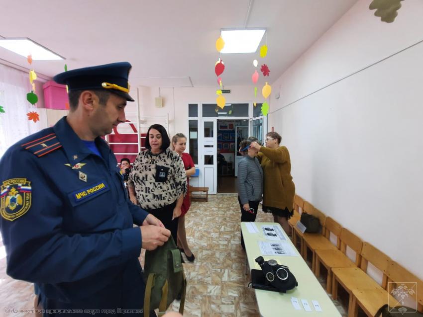 В детском саду №24 был оборудован пункт выдачи средств индивидуальной защиты, который в случае необходимости должен обеспечивать данными средствами неработающее население железнодорожного района.
