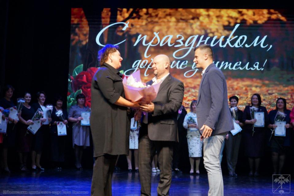 5 октября традиционно в большом зале Городского Дворца культуры с Днем учителя поздравляли сотрудников сферы образования. Сегодня этот замечательный праздник объединил работников школ, учреждений дополнительного образования, детских садов. Для них звучали слова поздравлений, им дарили цветы и музыкальные подарки.