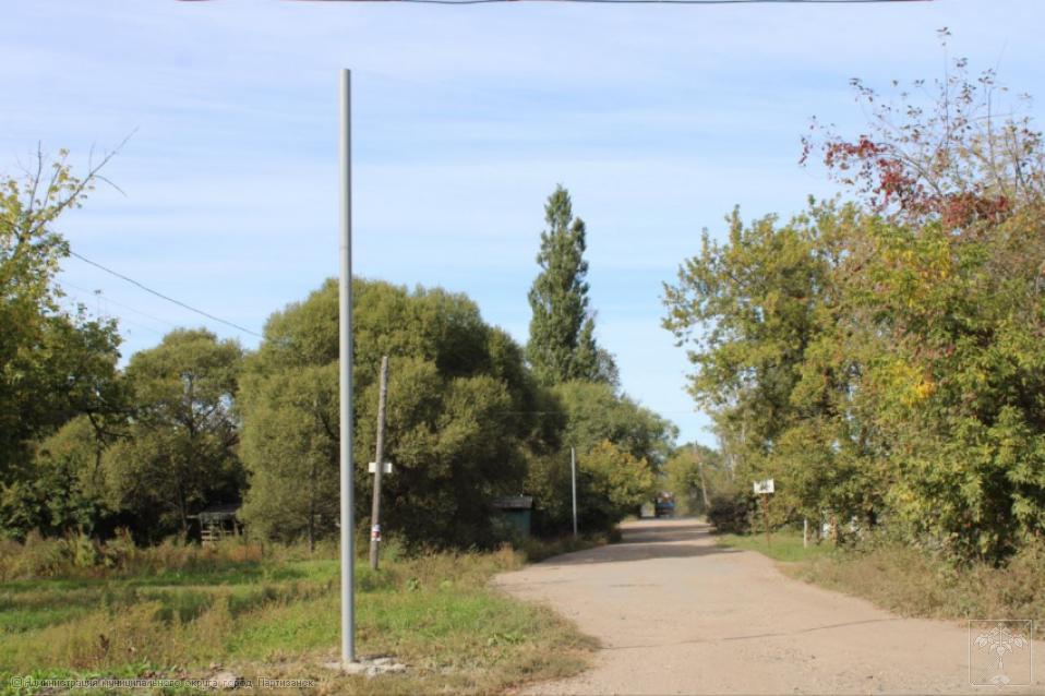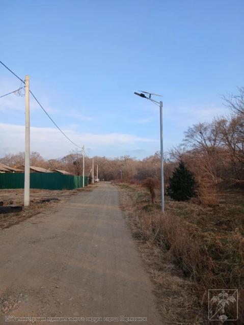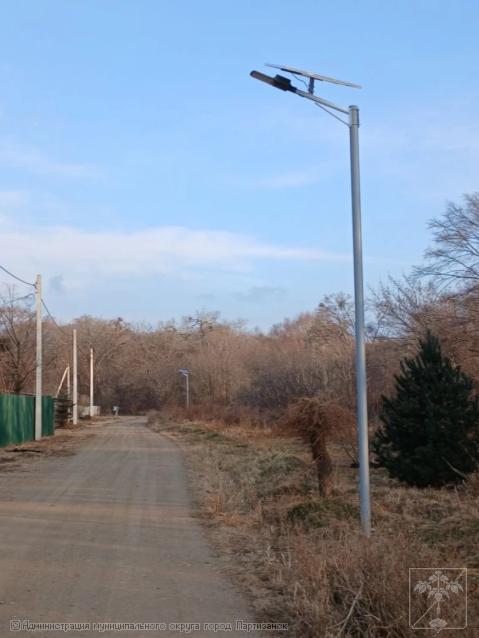 Установлено 20 опор и фонарей освещения на солнечных батареях.